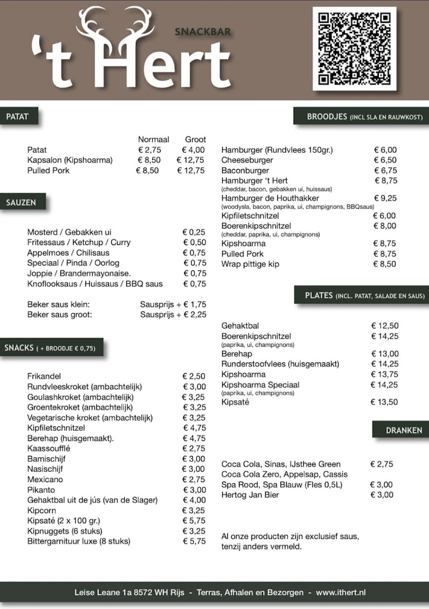 Snackbar ‘t Hert offers a straightforward and approachable menu focused on classic Dutch fast food favorites. You can expect simple, satisfying bites like freshly prepared fries paired with rich peanut sauce, crispy kroketten, and a warm cup of coffee to round out your meal.